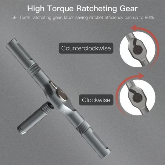 【T-shaped Ratchet Handle】: Features a detachable T-shaped ratchet handle, offering enhanced leverage andcomfort during prolonged use.